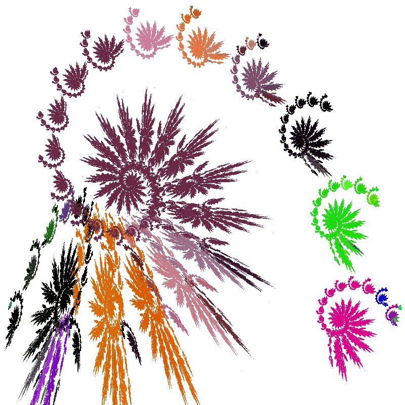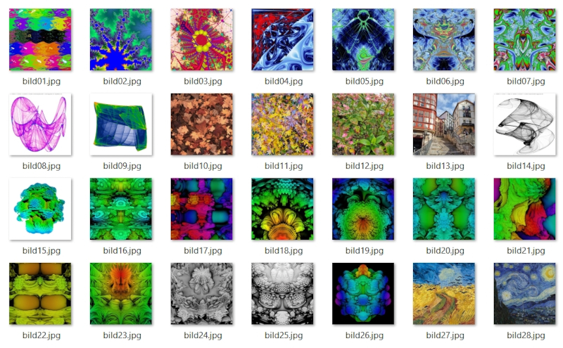 Die nachfolgend abgebildeten Chaos-Farn Abbildungen wurden mit immer neuen Vorlagebildern und zufällig