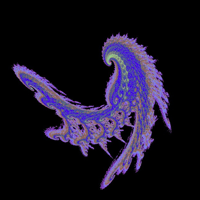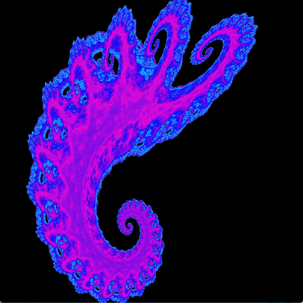 Mit diesen Werten und 100 Millionen Iterationsschritten bekommt man bei geeigneter Farbtafel dieses Bild: