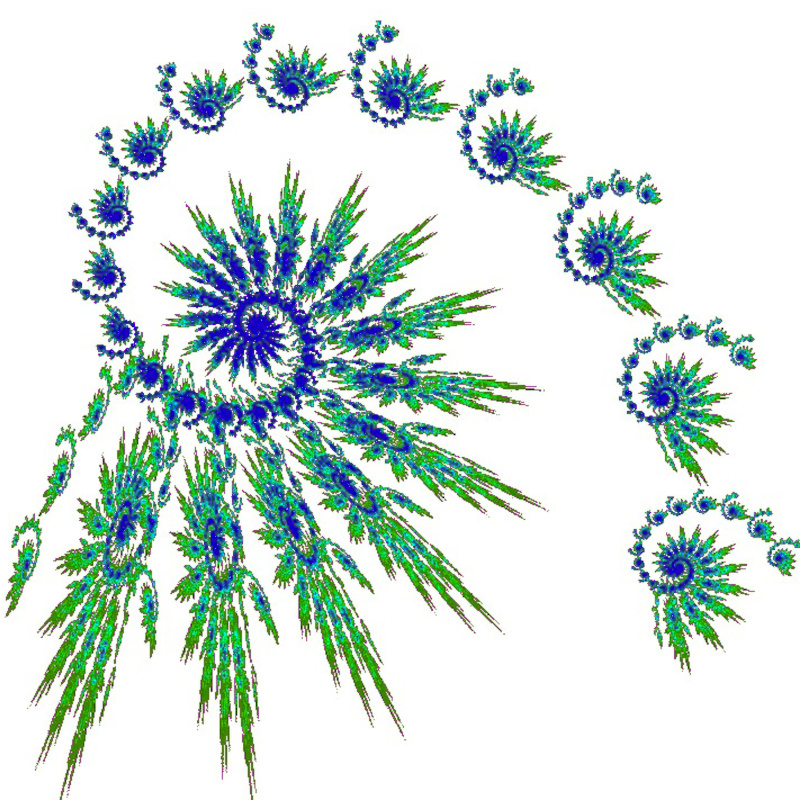 Ändert man noch weniger Parameter als im letzten Beispiel, dann bekommt man ein anderes distelähnliches Gebilde.