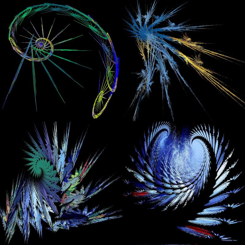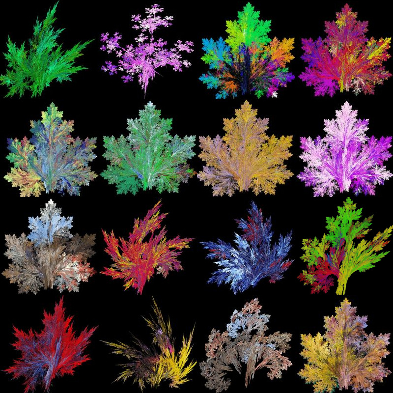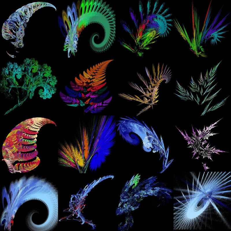 Die nachfolgend abgebildeten Chaos-Farn Abbildungen wurden mit immer neuen Vorlagebildern und zufällig
