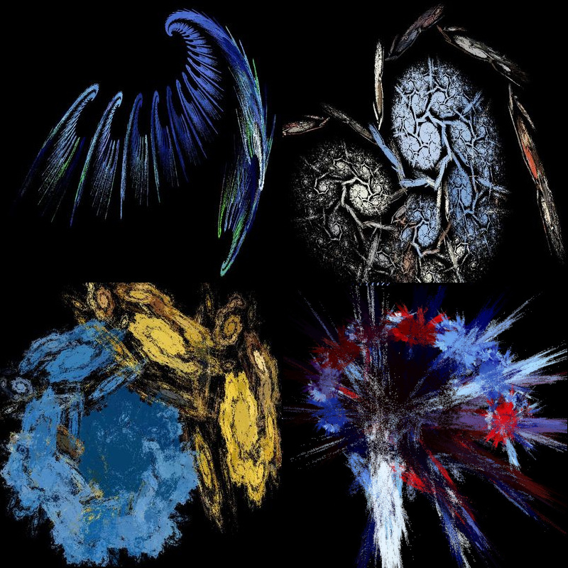 Im Folgenden einige Ergebnisse (in vierer Gruppen zusammengefasst) mit zufällig veränderten Parametern: