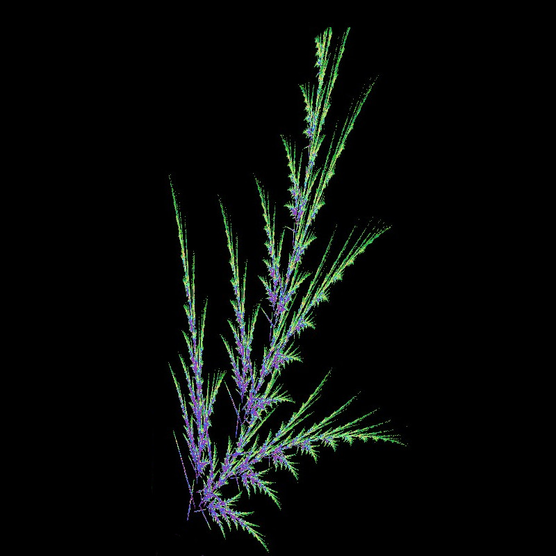 Ändert man noch weniger Parameter als im letzten Beispiel, dann bekommt man ein anderes distelähnliches Gebilde.
